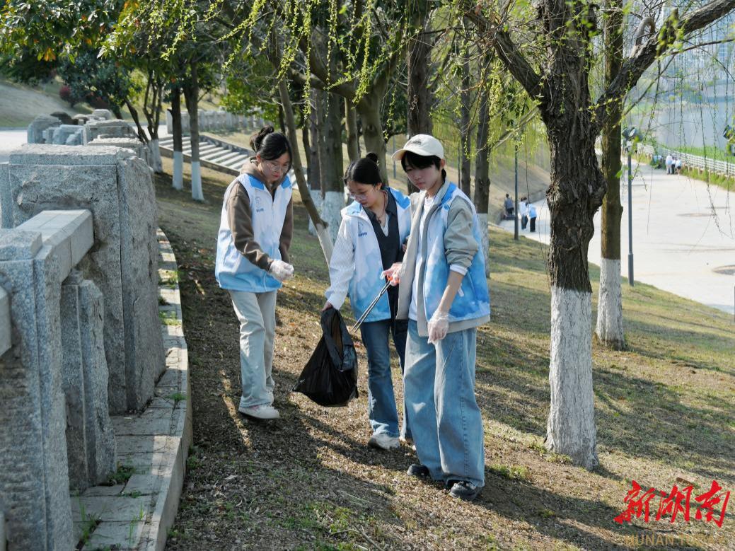 新湖南客户端3月18日讯(通讯员 覃紫玉 石俊杰 赵双祺)春风送暖,绿意盎然。为了守护湘江生态环境,发扬雷锋精神,落实劳动教育实践要求,3月14日,文学院2023级汉语言文学专业二班、四班的同学们开展“河小青”志愿服务活动。同学们以实际行动守护湘江生态环境,用青春力量践行雷锋精神。