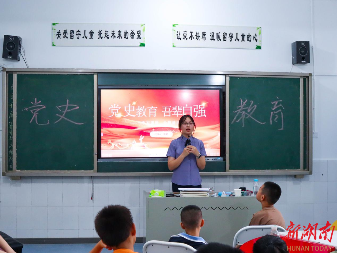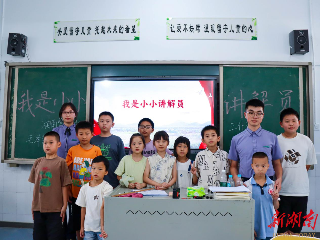 湖南日报·新湖南客户端7月19日讯(通讯员 康俊宇 张馨 姜艳群 贺旖旎)7月18日,衡阳师范学院“薪火”学生讲解团成员在暑期“三下乡”期间,走进衡南县三塘联合学校松山中学开展了一场别开生面的大思政课。衡师青年发挥讲解团专业优势,通过精心设计的党史主题讲解、“小小讲解员”沉浸式培训与实践体验,让红色基因在孩子们心中扎根,点燃少年志向。